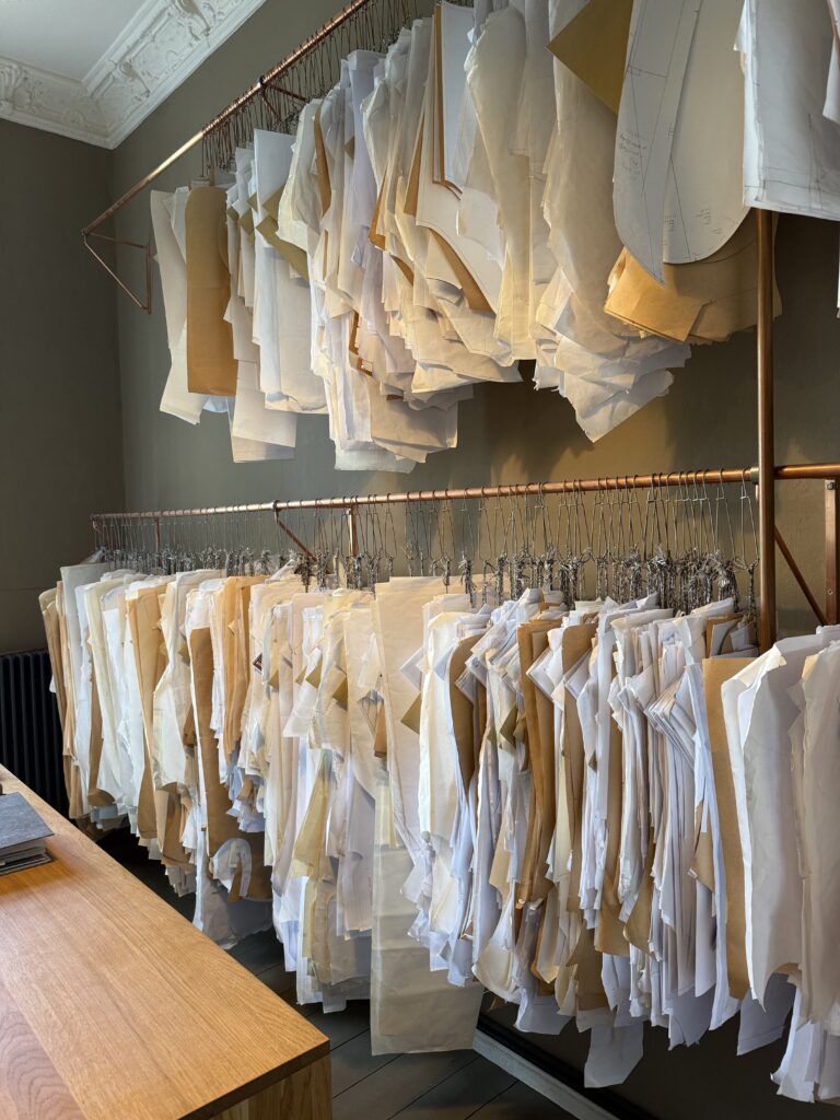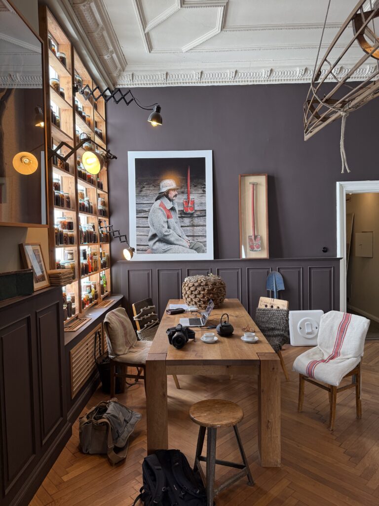 In a quiet Berlin atelier, rows of paper patterns hang like archives of past experiments. Nearby, garments in earthy wools and washed linens rest beside an ornate tiled stove. It is a space where history and craft meet — a room equal parts workshop and salon, where every detail whispers of patience, precision, and independence.